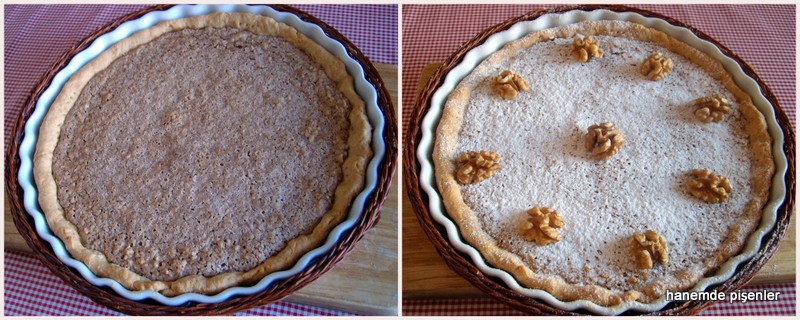 Fırından çıkardığımız yarı pişmiş tartın içine dökülür.