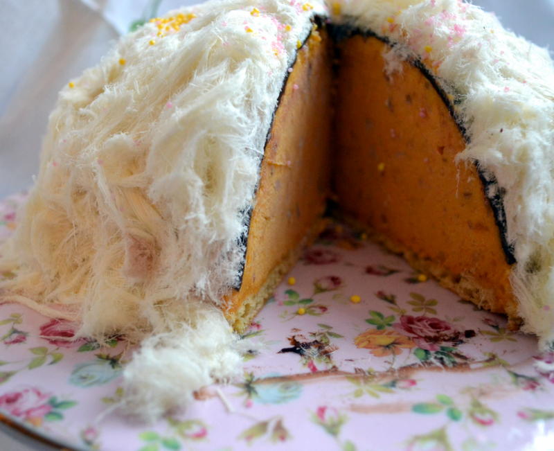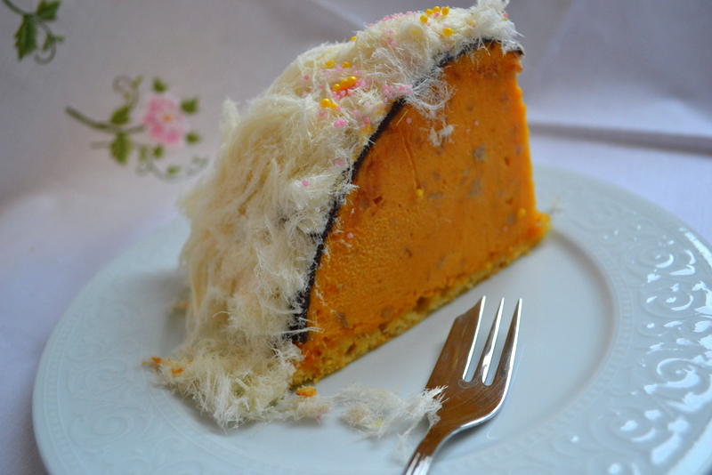 Kubbe biçimli kasenin içini streç film ile kaplayın. Kabak püresini kalıba düzgünce, içinde hava boşlukları kalmayacak şekilde yerleştirin.En üste pişen keki yerleştirin. Tüm kalıbı steç film ile kaplayıp derin dondurucuya kaldırın, bir gece donmaya bırakın.