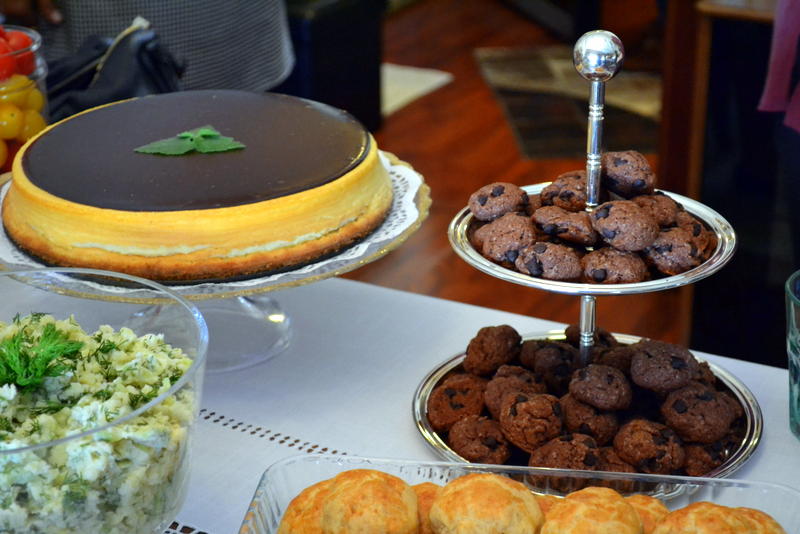 salatalıklı patates salatası, patatesli poğaçalar, frambuaz soslu cheesecake, çikolata soslu cheesecake