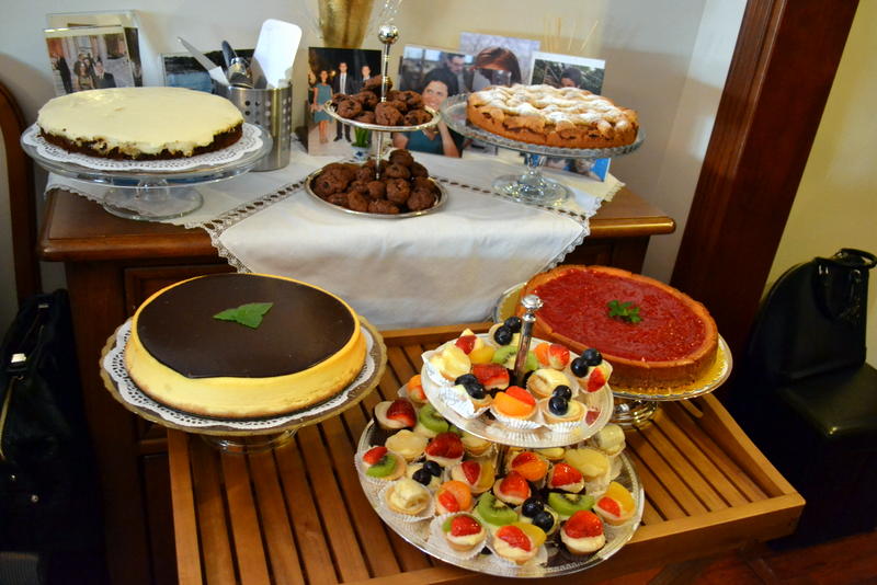 Tatlı büfesinde Özlem’in incirli kremalı keki, Rengin’in nefis gevrek elmalı tartı (her ikisini de en kısa sürede yapıp burada,yayınlayacağım), Füsun’un parça çikolatalı kukileri, frambuaz soslu cheesecake, mini pöti furlar ve benim klasik cheesecake’im bu defa çikolata sosuyla.