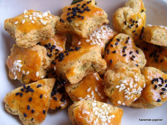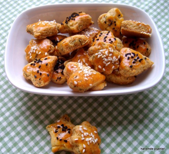 Toplanan hamuru streç filme sararak buzdolabına kaldırın, 30 dk dinlendirin. Dinlemiş hamuru mutfak tezgahında merdane ile hafifçe unlayarak yarım santim kalınlığında açın. Dilediğiniz kurabiye kalıpları ile kesin. Yağlı kağıt serilmiş fırın tepsine dizin. Tüm hamuru bu şekilde bitirdikten sonra 175 dereceye ısıtılmış fırında 10-15 dk üzeri kızarmadan pişirin.