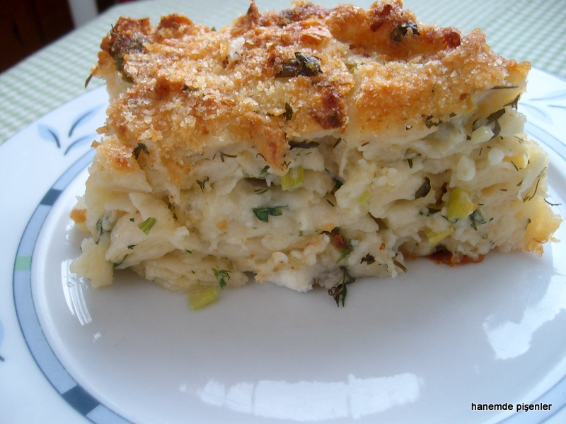 Bu yemek de çeşitli tesadüflerin bir araya gelmesiyle çıktı ortaya. Şemsa hanımın taze hamurlu balık tarifini okuduğumdan beri makarna hamuru yapmak vardı aklımda. Ama birebir onun tarifini değil de makarnalı başka bir yemek denemek istiyordum. Daha önceleri de bir kaç kere makarna hamuru yapmışlığım olduğu için daha güvenliydim. Bu defa her şeyi elimle yaptım ama anladım ki hamuru açma ve kesme işi için şu ev tipi makarna makinalarından almakta fayda var.